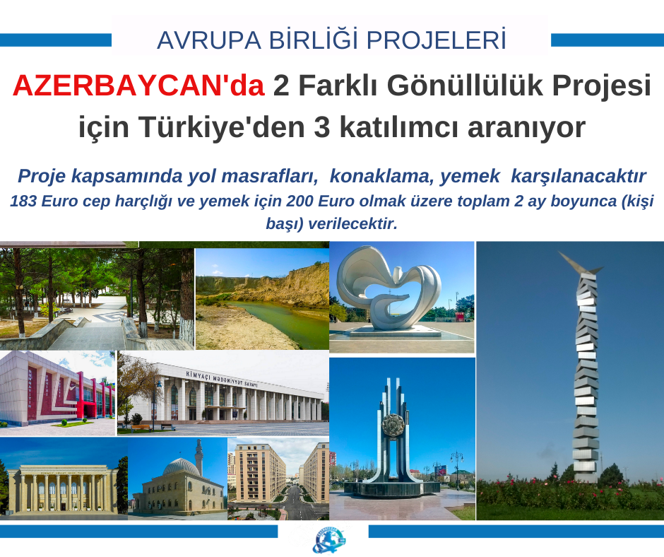 Azerbaycan’da gerçekleşecek 2 farklı gönüllülük projesi için Türkiye’den 3 katılımcı aranıyor.
