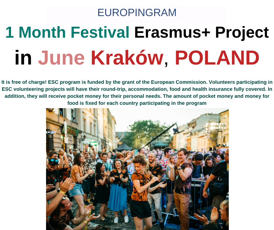 Krakow will be your second home throughout the project. The host institution will be with you in any situation.