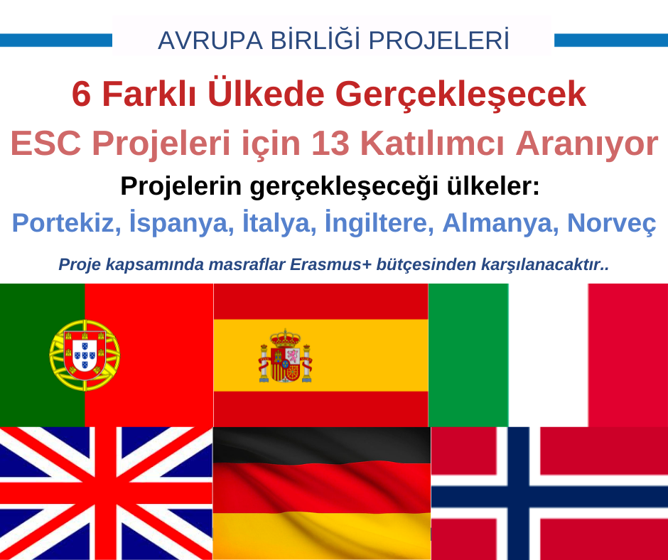 Projelerin gerçekleşeceği ülkeler: Portekiz, İspanya, İtalya, İngiltere, Almanya, Norveç
