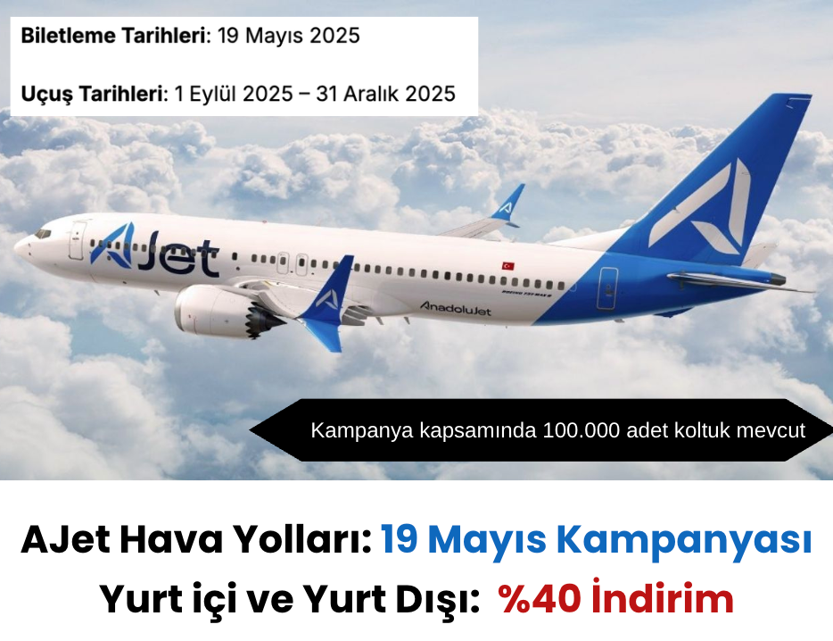 🔹 Geçerli Seferler: Kampanya sadece AJet tarafından gerçekleştirilen tarifeli uçuşlar için geçerlidir.