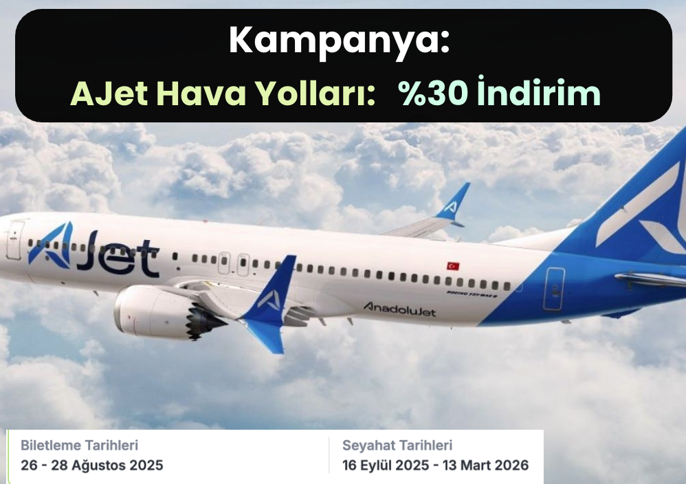 Kampanya kapsamında tek yön uçuşlar %30 indirimli olarak sunulmaktadır.