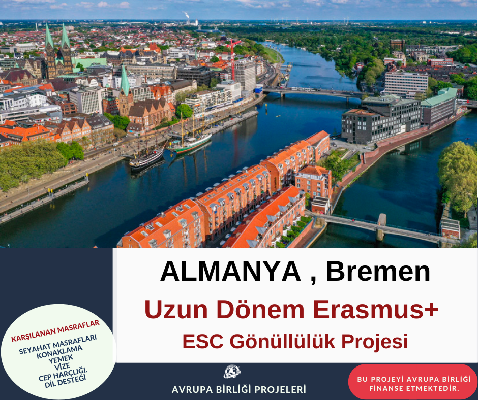 Kendi odanızın olacağı Bremen’de sadece ESC gönüllüleri için bir evde konaklayacaksınız. Bremen, Kuzey-Batı Almanya’da (yaklaşık 500.000 nüfuslu), Hamburg’a, Hollanda sınırına ve Kuzey Denizi kıyısına yakın bir şehirdir.