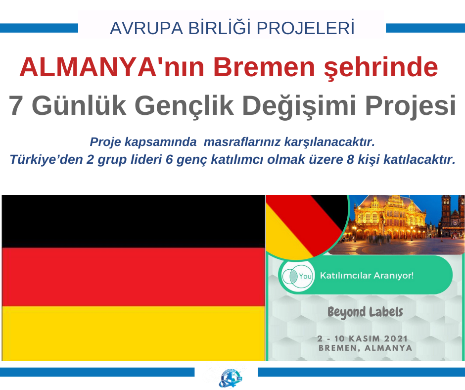 Almanya’nın Bremen şehrinde 2 – 10 Kasım 2021 tarihleri arasında ” Beyond Labels ” isimli Gençlik Değişimi projesi için genç katılımcılar aranıyor.