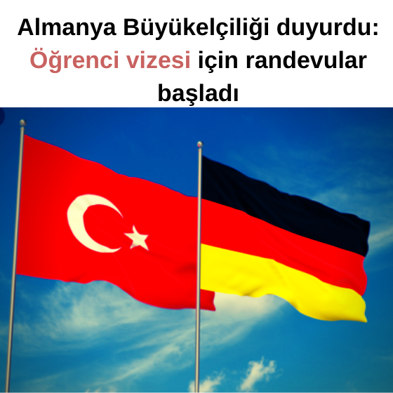 Almanya Federal Cumhuriyeti Büyükelçiliği resmi hesabından yapılan açıklamaya göre Ankara’da bulunan iData çağrı merkezinin aracılığıyla tekrardan öğrenci vizesi için randevu verme hizmetinin başladığı duyuruldu . Vize başvurusu yapmak için Almanya’da öğrenim göreceğiniz üniversite tarafından kabul yazısını almanız gerekiyor