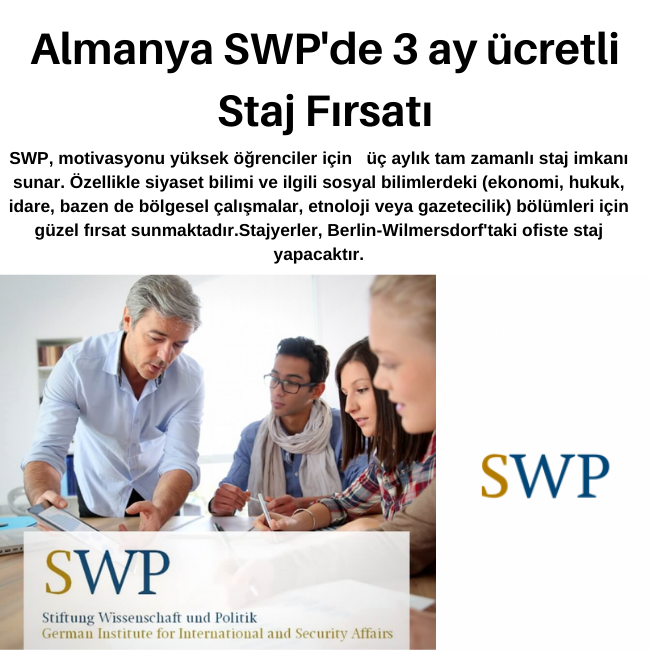 SWP, motivasyonu yüksek öğrenciler için üç aylık tam zamanlı staj imkanı sunar. Özellikle siyaset bilimi ve ilgili sosyal bilimlerdeki (ekonomi, hukuk, idare, bazen de bölgesel çalışmalar, etnoloji veya gazetecilik) bölümleri için güzel fırsat sunmaktadır.