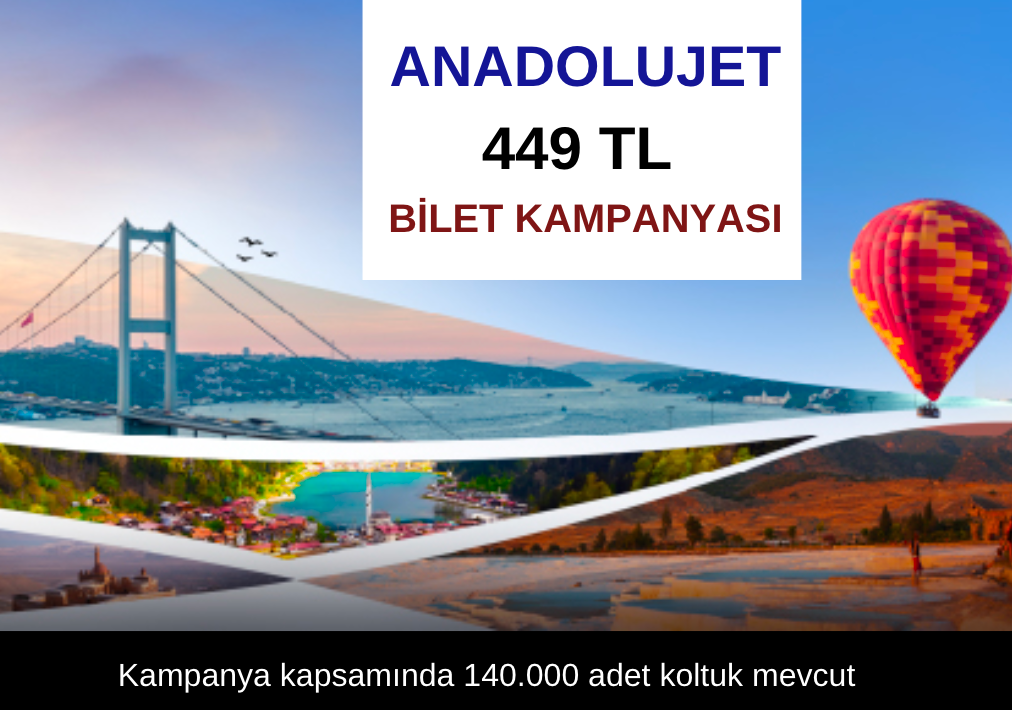 AnadoluJet 449 liradan başlayan fiyatlardan bilet satışlarına başladı.