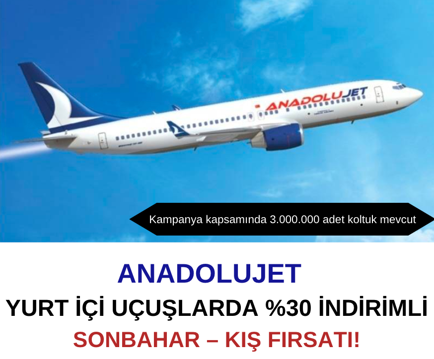 Sonbaharın renk cümbüşü ve kışın beyaz güzellikleriyle Türkiye’yi keşfetmek isteyenlere harika bir fırsat. AnadoluJet’in %30 indirim kampanyası başladı.
