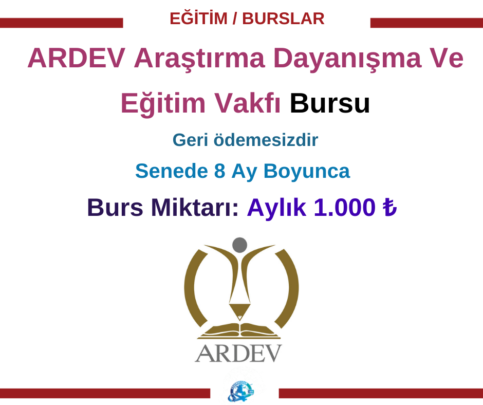 ARDEV Vakfı’nın verdiği burslar, başarılı olan öğrencilerin ve maddi destek ihtiyaç duyan öğrenciler için belirlenen süreler içinde (haftada 1,5 gün) Vakıfın çalışmaları için fayda sağlaması karşılığı sonucu verilecektir.
