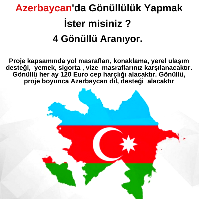 Proje kapsamında yol masrafları, konaklama, yerel ulaşım desteği, yemek, sigorta , vize masraflarınız karşılanacaktır. Gönüllü her ay 120 Euro cep harçlığı alacaktır. Gönüllü, proje boyunca Azerbaycan dil, desteği alacaktır