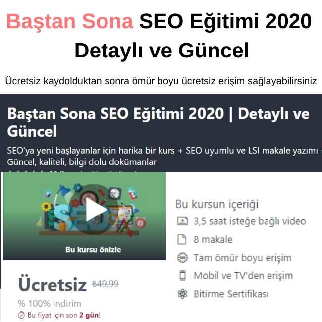 Bu kursa 2 gün içinde kaydolursanız, ömür boyu ücretsiz erişebilirsiniz
