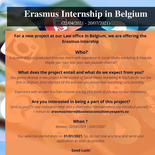 Belçika’daki Hukuk bürosunda yeni bir proje için Erasmus Staj’ı yapmak ister misiniz?
