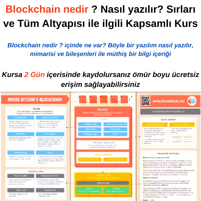 - Blok, Block zinciriyle, Bitcoin, Ethereum ve bu saydıklarımızın teknolojileriyle birlikte kurs hocasının yazdığı