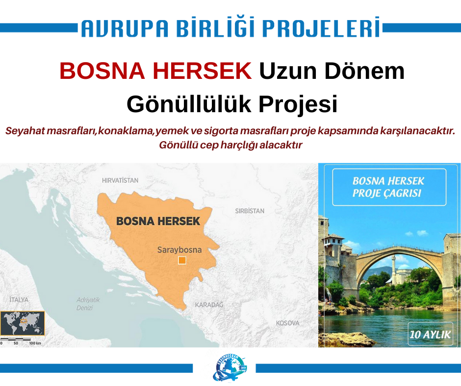 Bosna Hersek , VİSAKO Şehrinde NİSAN 2021 tarihlerinde Başlayacak projede 10 ay sürecek olan ESC Projesi için bir kadın katılımcı yollanacaktır.