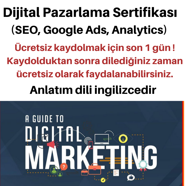 Dijital pazarlama konusunda ilgisi olan kişiler için uygun bir kurstur. Kursun anlatım dili ingilizcedir. Dersleri anlamak için ingilizce şart çünkü anlatım dili ingilizcedir. Kurs gerçekten kaliteli bir kurs, 62063 kayıtlı öğrenciye sahiptir.