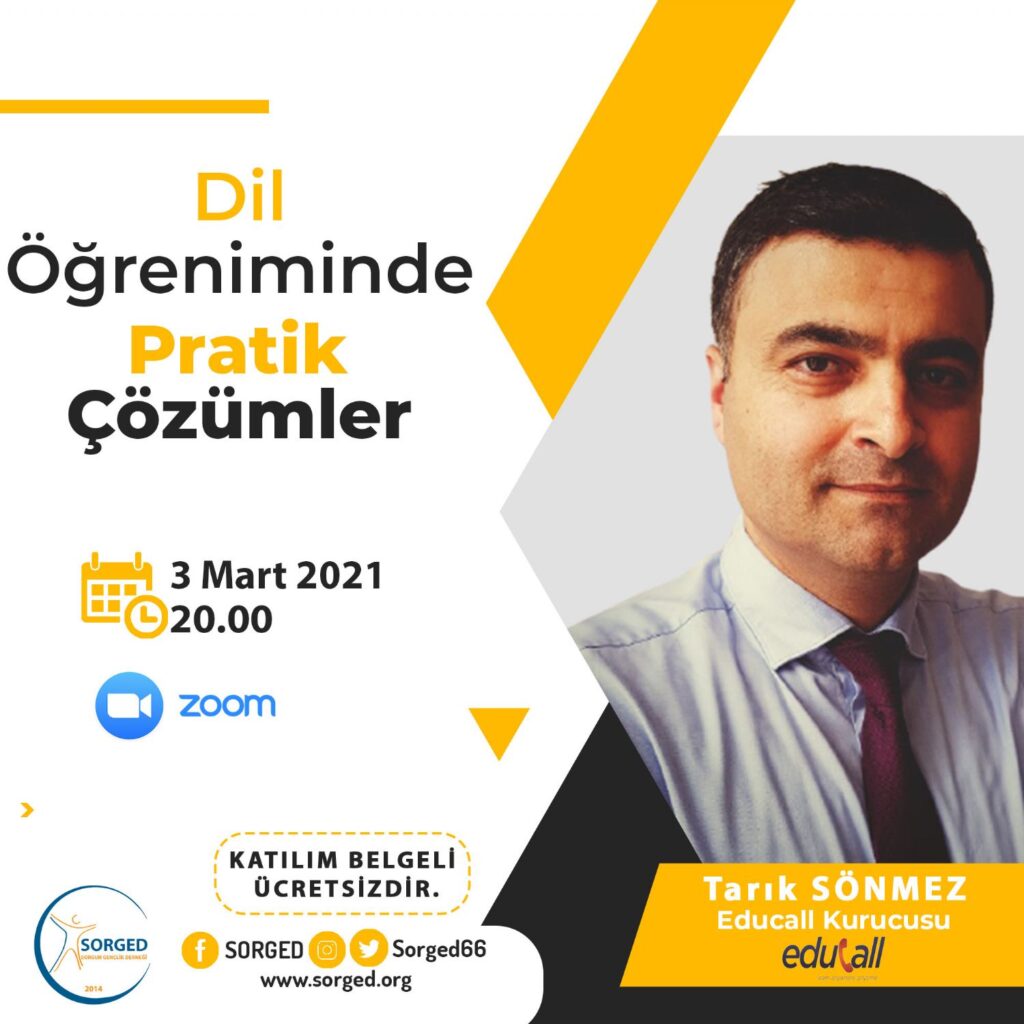 Pandemi döneminde online eğitimler devam etmektedir. Sorgun Gençlik Derneği, Educall Kurucusu Tarık Sönmez’i konuk ediyor.