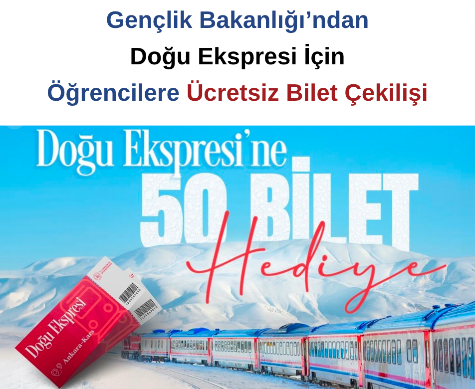 Gençlik ve Spor Bakanlığı, popüler turistik rotalardan biri olan Doğu Ekspresi için öğrencilere yönelik ücretsiz bilet çekilişi düzenliyor. Çekilişe katılmak için üniversite öğrencilerinin Gençlik ve Spor Bakanlığı’nın Instagram hesabındaki duyuruya yorum yapmaları gerekiyor.