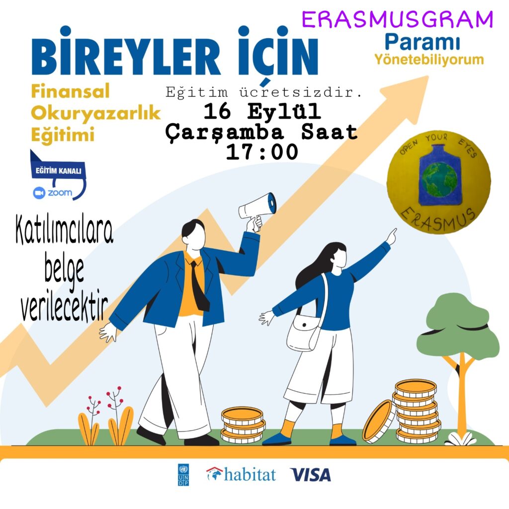Erasmusgram takipçilerine özel olarak , Paramı Yönetebiliyorum Projesi kapsamında online Bireyler için Finansal Okuryazarlık eğitimi gerçekleşecektir