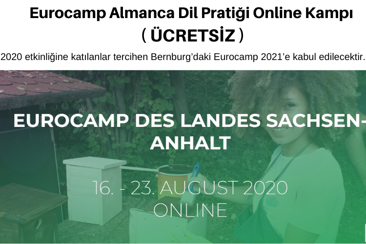 COVID-19 sürecinden dolayı, her yıl düzenli olarak düzenlenen Saksonya-Anhalt EUROCAMP bu sene online olarak gerçekleşecektir. Çok keyifli bir programın hazırlandığı bu online almanca dil pratik kampını kaçırmayın !