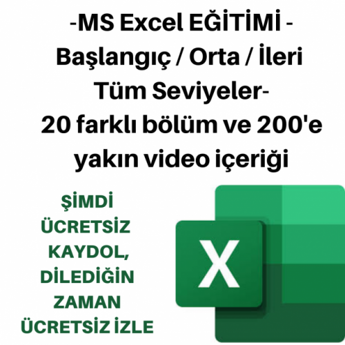 Microsoft EXCEL ücretsiz kurs için son saatler !! Ücretsiz olarak kaydolun, daha sonra dilediğiniz zaman ücretsiz izleyin. Excel Eğitimleri, okul, iş ve genel olarak hayatınızın her alanında mutlaka bilmeniz gereken bir programdır.