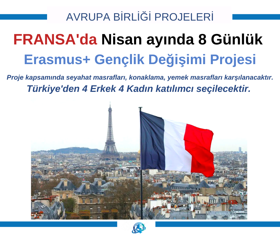 Fransa’da gerçekleşecek Erasmus+ Gençlik değişimi projesi için 1 Erkek 1 Kadın katılımcı aranıyor.