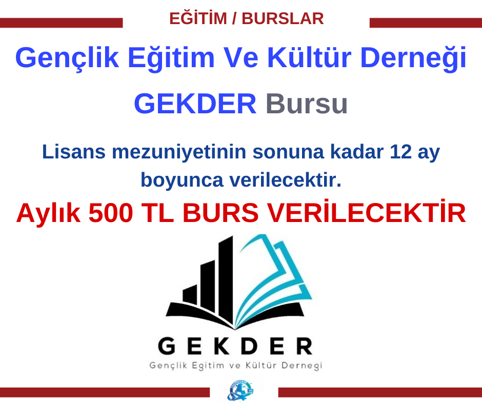 Gençlik Eğitim Ve Kültür Derneği GEKDER tarafından burs başvurusu için duyuru yapıldı!
