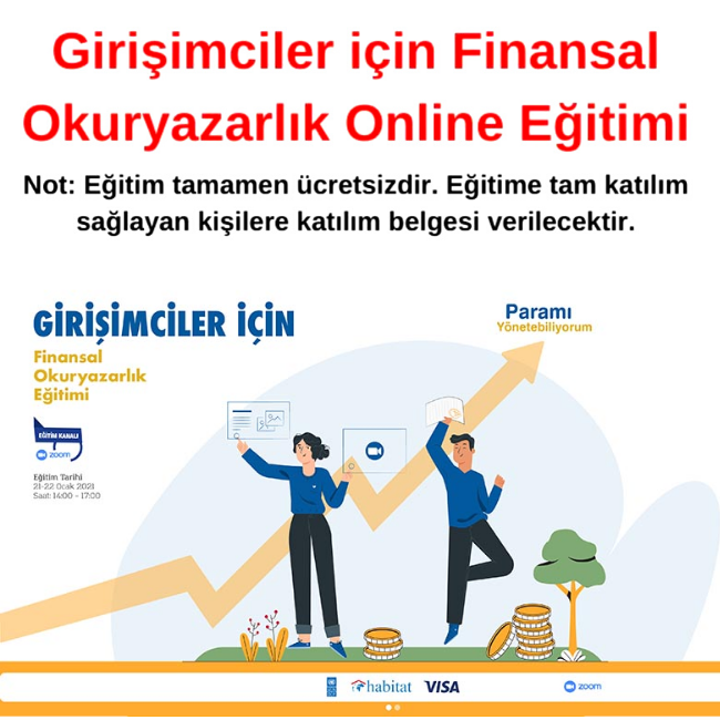 Habitat Derneği tarafından verilecek olan Paramı Yönetebiliyorum Projesi kapsamında Online olarak “Girişimciler için Finansal Okuryazarlık Eğitimi” gerçekleştirilecektir