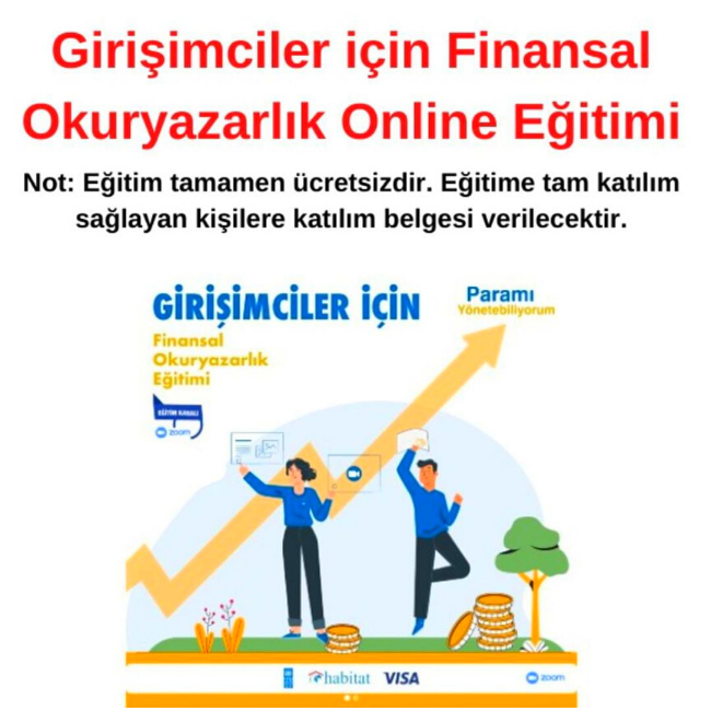 Habitat Derneği tarafından verilecek olan Paramı Yönetebiliyorum Projesi kapsamında Online olarak “Girişimciler için Finansal Okuryazarlık Eğitimi” gerçekleştirilecektir