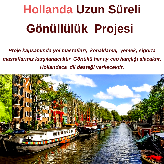 Proje kapsamında yol masrafları, konaklama, yerel ulaşım desteği, yemek, sigorta , vize masraflarınız karşılanacaktır. Gönüllü her ay cep harçlığı alacaktır. Gönüllü, proje boyunca Hollandaca dil desteği alacaktır