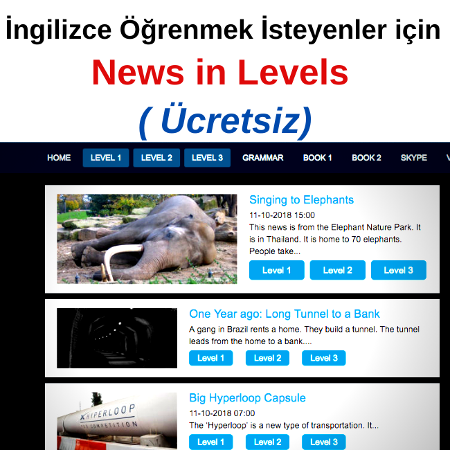 Her gün pratik yaparsanız, bir gün ana dili konuşanlardan gelen orijinal haberleri anlayabilirsiniz. Ana dili İngilizce olan kişileri anlamak, amacınız bu olmalıdır. Seviye 1, Seviye 2 ve Seviye 3 bu hedefe ulaşmanıza yardımcı olacaktır.