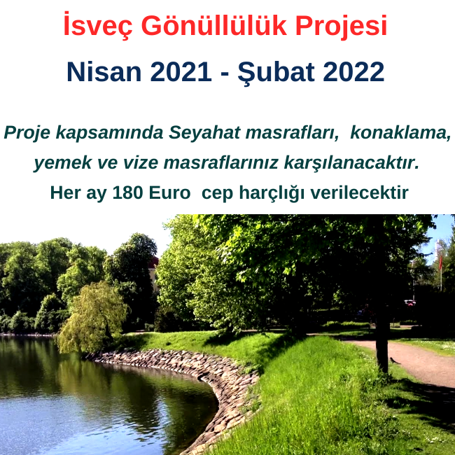 Proje kapsamında yol masrafları, konaklama, yerel ulaşım desteği, yemek, sigorta masraflarınız karşılanacaktır. Gönüllü her ay cep harçlığı alacaktır. Gönüllü, proje boyunca İsveççe dil desteği alacaktır