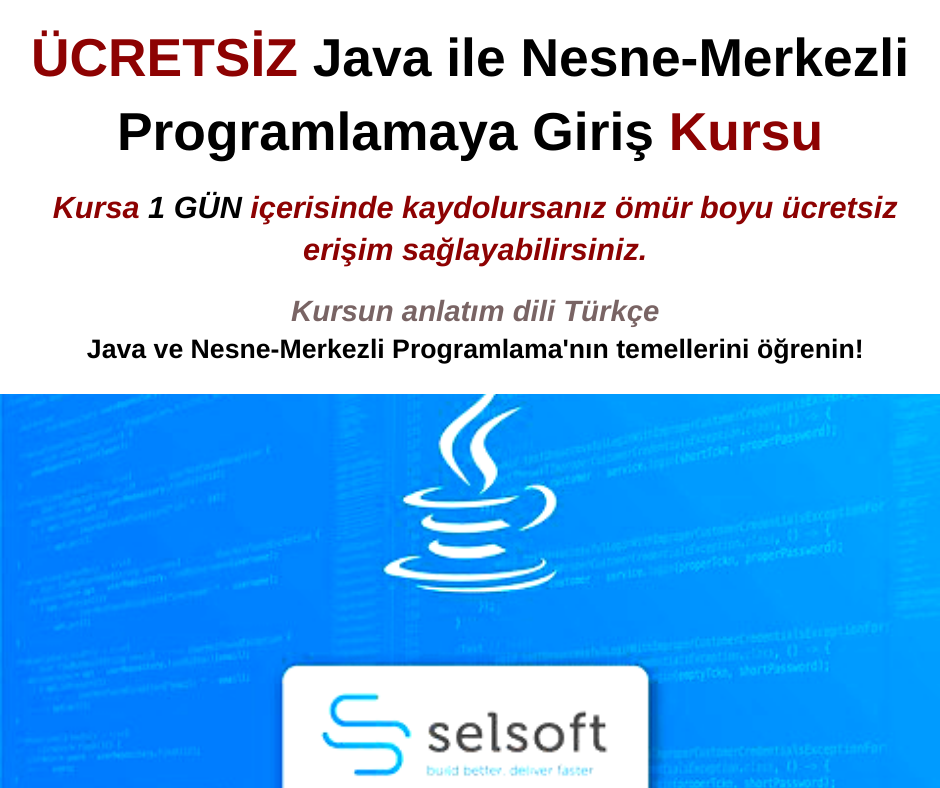 Bu Kurs ile Java ve Nesne-Merkezli Programlama temellerini öğreneceksiniz.