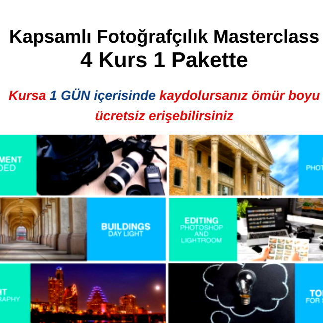 Bu kurs sayesinde fotoğrafçılık alanında profesyonel / usta olacaksınız. Bu kurs, adım adım yönergeleri kullanarak temelden ileri seviyeye fotoğraf kavramlarını sunmak için tasarlanmıştır.
