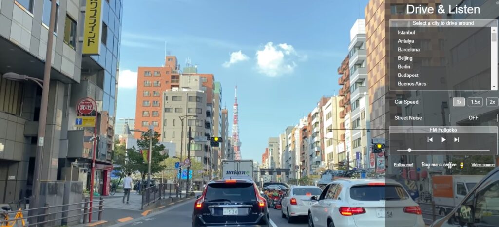 Sitede istediğin ve listede olan dünya şehrini seçiyorsun, o şehirden bir radyo kanalı açıp arabayla geziyorsun. Radyo kanalı bulunan şehirin yerel radyo kanalları.. Evde bunalınca Teoman eşliğinde İzmir sokaklarında arabayla gezmenizi sağlayan bir site