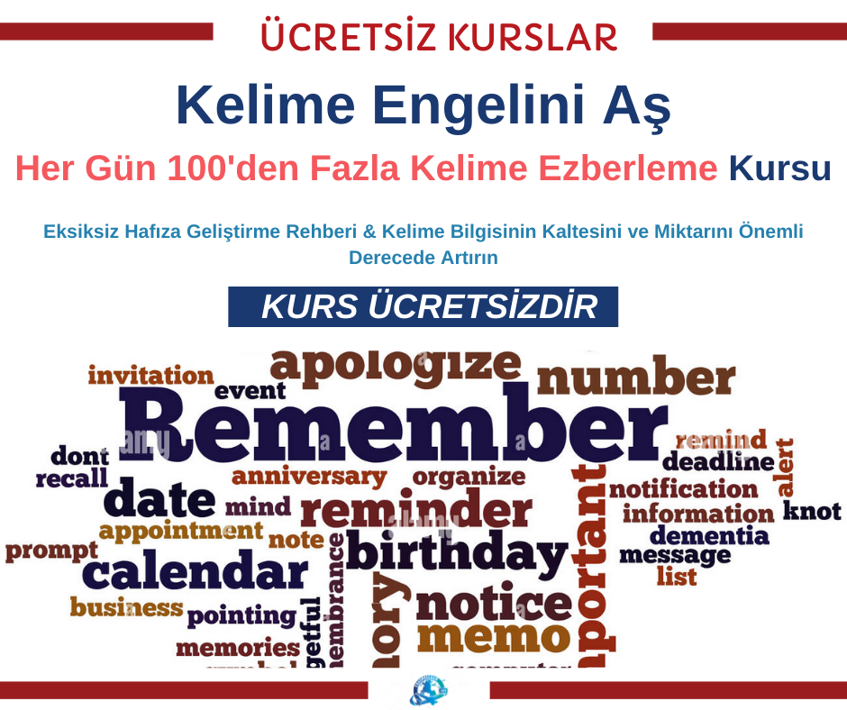 Eksiksiz Hafıza Geliştirme Rehberi & Kelime Bilgisinin Kalitesini ve Miktarını Önemli Derecede Artırmak istiyorsanız bu ücretsiz kursa kaydolabilirsiniz.