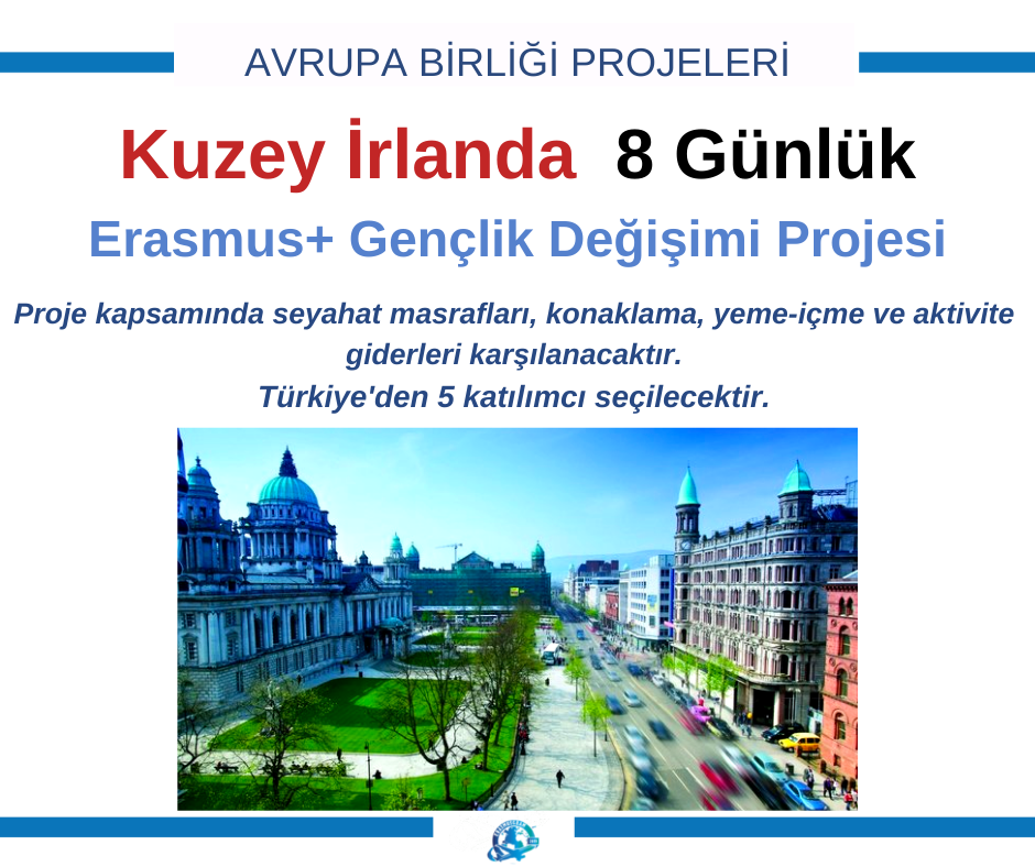 25 Nisan – 4 Mayıs 2022 tarih arasında Kuzey İrlanda’nın Bushmills ve Belfast şehirlerinde gerçekleşecek Erasmus+ Gençlik Değişim Projesi için Türkiye’den 5 katılımcı seçilecektir.