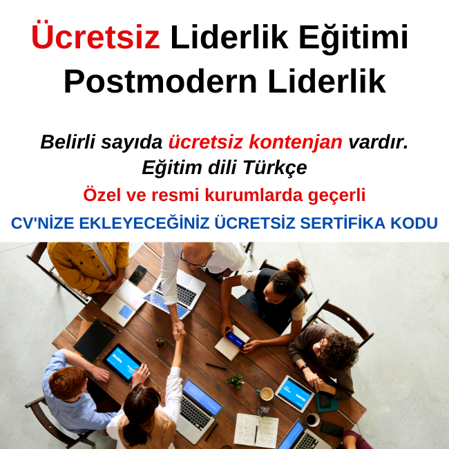 Liderlik eğitimi, postmodern dönem içerisinde geçerli olan liderlik felsefesi ve sanatı anlatabilmesi amacı ile özel bir şekilde tasarlanan ve online online şekile getirilen bir eğitimdir. Bu eğitim ile kendinizi geliştirebilirsiniz. Liderlik kavramıyla ilgili püf noktaları öğrenebileceksiniz. Yeni çağ liderliği ile ilgili sorularınızın bütününe cevap alacaksınız.