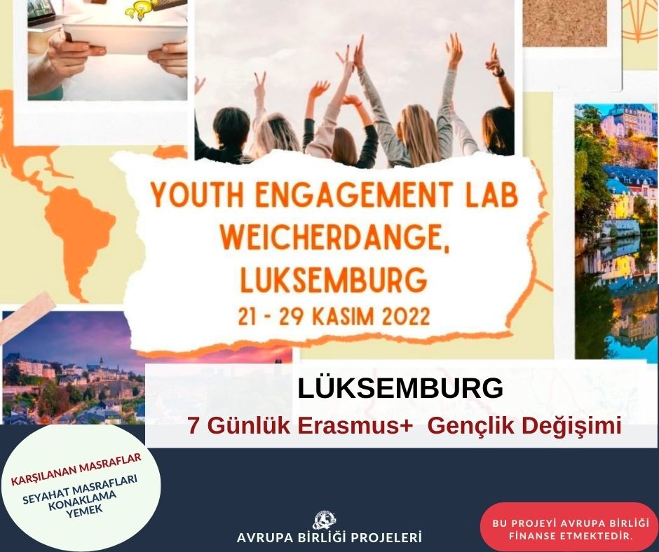 📍21-29 Kasım 2022 tarihlerinde Weicherdange, Lüksemburg’da düzenlenecek “Youth Engagement Lab” isimli Erasmus+ Gençlik Değişimi Projesine 5 katılımcı aranıyor!