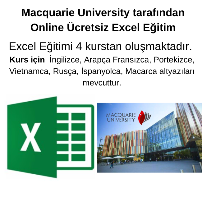 Dünyaca bilinen Macquarie University tarafından verilen ve online olarak sunulan bu eğitim ile iş hayatınız ve günlük hayatınızdaki işleriniz içinde çok gerekli olan Excel becerilerinizi geliştirip öğrenebileceksiniz.