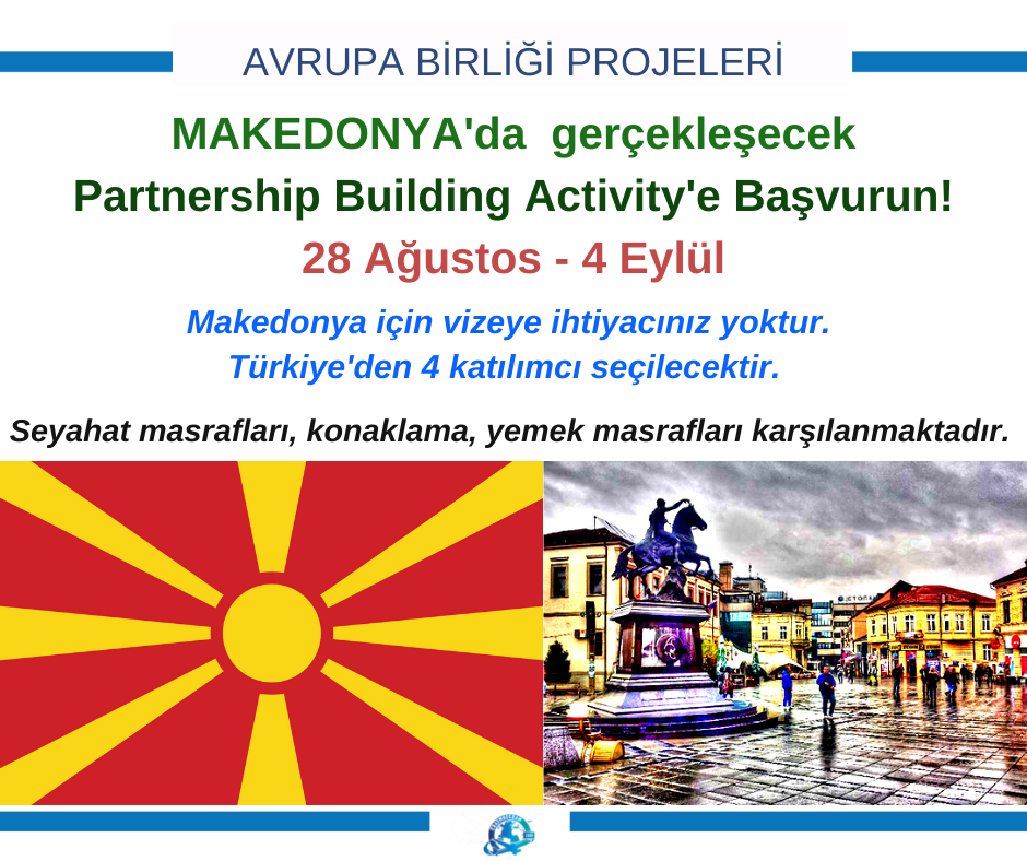 28.8. – 4.9.2021 tarihlerinde; Bitola, K.Makedonya’da gerçekleşecek “Happiness/when two different socks match” adlı Partnership Building Activity için projeye katılacak gençlik çalışanları aramaktadır.
