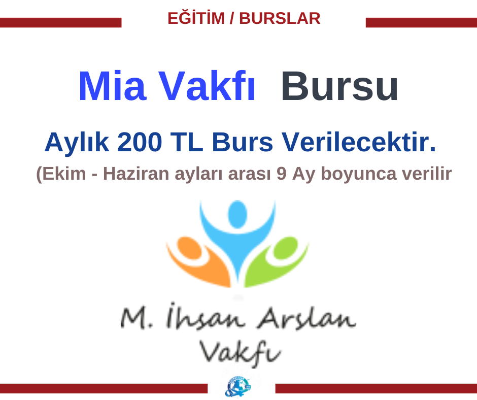 Mia Vakfı, veridği bursundaki amamç başarılı öğrencilerek karşılıksız ( geri ödemesiz ) burslar vermek ve öğrenim hayatlarını başarılı bir şekilde bitirmelerini sağlamaktadır.