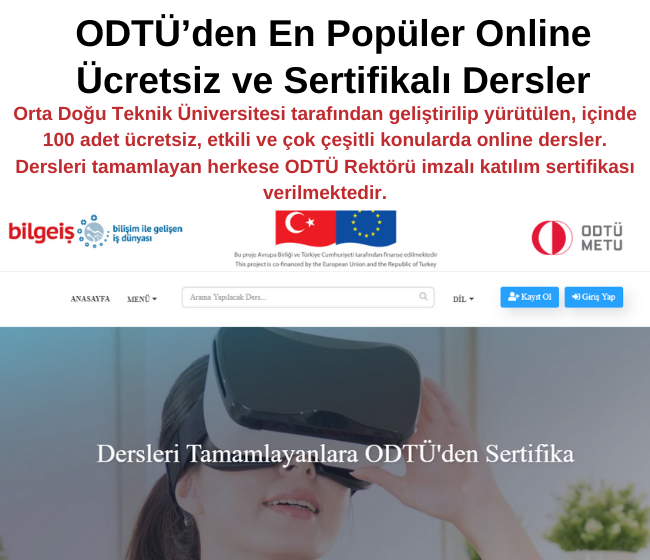 Türkiye’de popüleritesi yüksek olan üniversitelerinden ODTÜ, Avrupa Birliği Projesinin kapsamı dahilinde herkes için Online olarak ücretsiz ve sertifikali derslerin programını başlatmıştır.