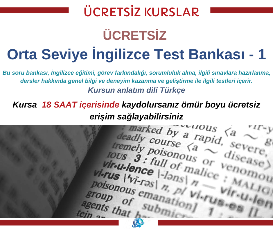 Bu soru bankası, İngilizce eğitimi, görev farkındalığı, sorumluluk alma, ilgili sınavlara hazırlanma, dersler hakkında genel bilgi ve deneyim kazanma ve geliştirme ile ilgili testleri içerir.