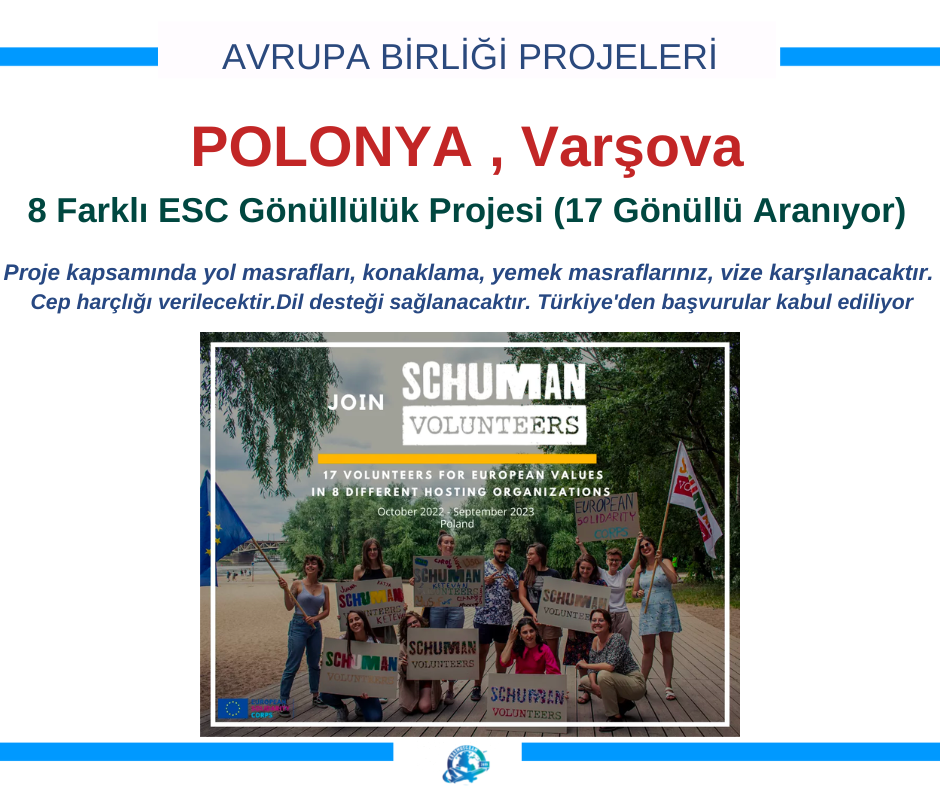 Polonya’daki 8 farklı ev sahibi organizasyonu desteklemek için 17 Schuman Gönüllüsü için çağrı başladı!