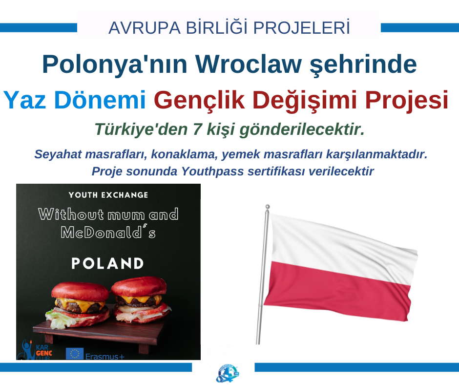 Polonya Ulusal Ajansı’nın finanse ettiği ‘Without Mum And McDonalds’ isimli Erasmus+ Gençlik Değişimi projesi için Türkiye’den 7 katılımcı aranıyor.
