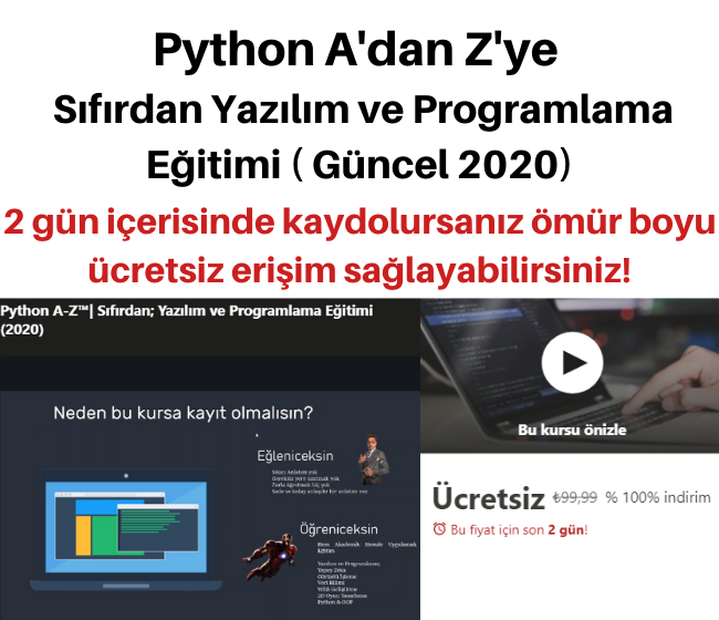 Bu kursa ücretsiz kaydolmak ve ömür boyu ücretsiz erişim sağlamak için son 2 gün ! 2 gün içerisinde kaydolursanız ömür boyu ücretsiz erişim sağlayabilirsiniz!