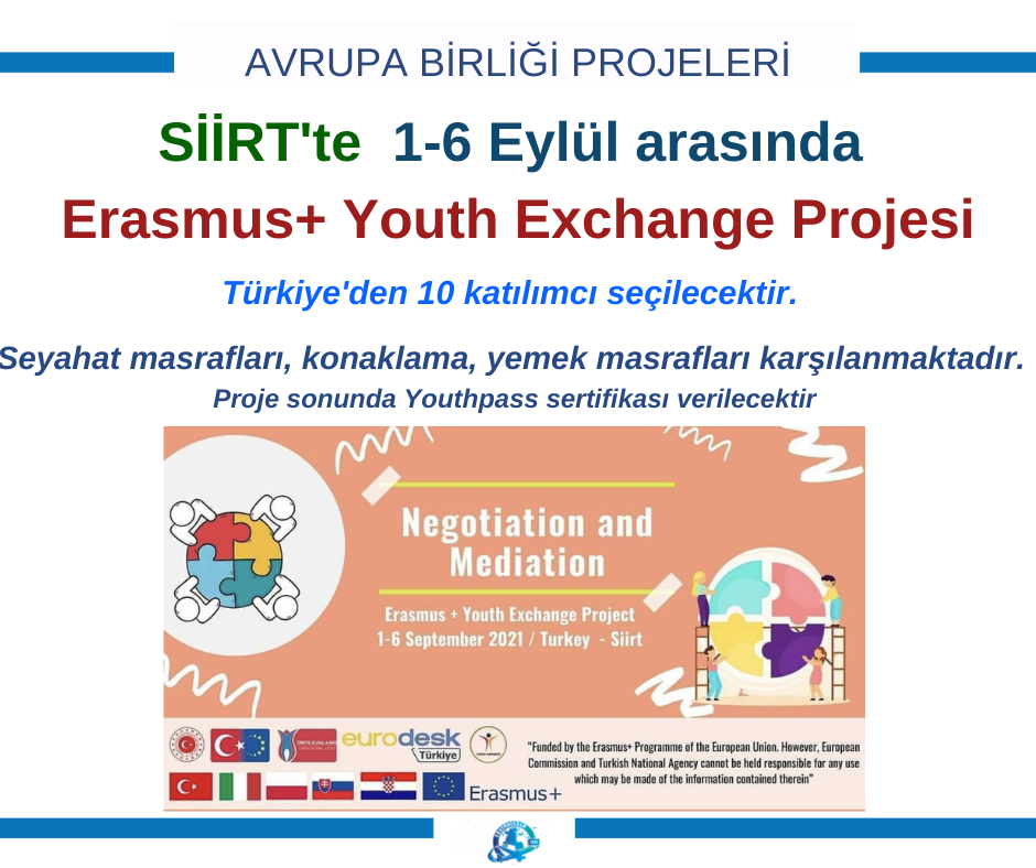 1-6 Eylül 2021 tarihlerinde proje hareketliliği Türkiye / Siirt’te gerçekleşecektir.