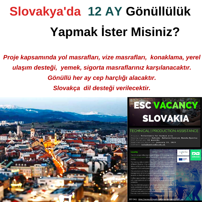 İngilizce olarak Europass CV ve motivasyon mektubunuzu info@zahradacnk.sk yollayınız