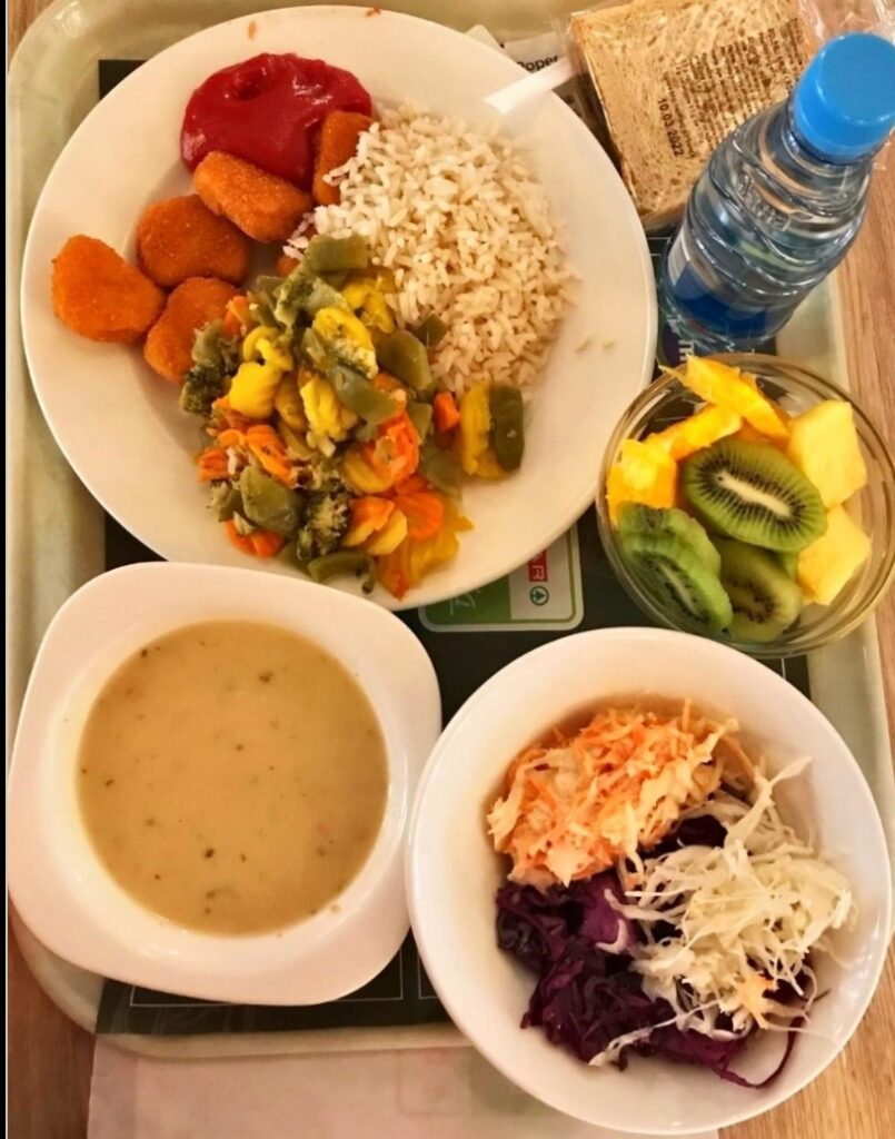 Boni kullanarak 3,50 Euroya çorba ana yemek meyve salata yiyebilirsiniz. Bunun yanında su ve ekmek de fiyata dahil. Kendi salatanızı açık büfeden alabilirsiniz. Açık büfedeki yemekler sınırlı olsa da oldukça doyurucu. Ayrıca eğer yemekleriniz bitmediyse ve dökmek istemiyorsanız her yemek için farklı kapları da satın alarak yemeğinizi yanınızda götürebilirsiniz.