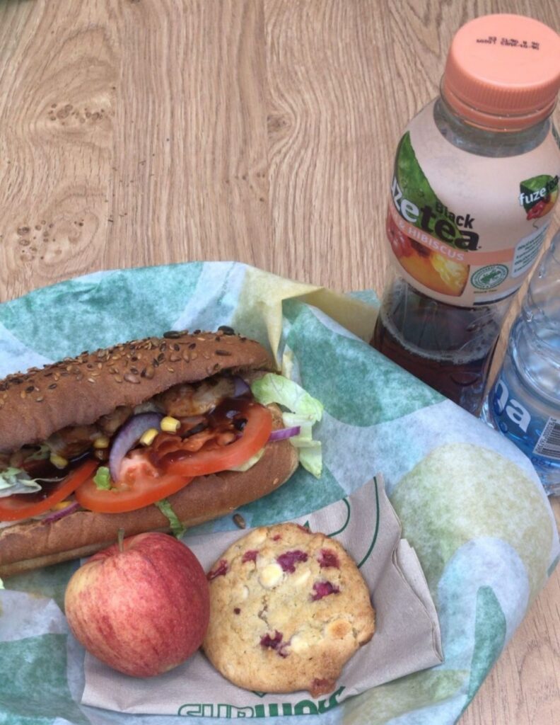 Boni kullanarak 2 Euroya açık büfeden kendi menünüzü oluşturuyorsunuz. Tüm menüyü nasıl isterseniz öyle yapabilirsiniz. Bu sandviçlere ek olarak elma ve istediğiniz bir kurabiye de yanında veriliyor.