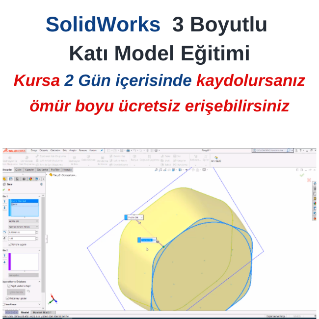 SolidWorks 2019 3 Boyutlu Katı Model Kursuyla birlikte parametrik çalışmasının mantığı , elemanlarını, bu elemanların işleyişi, bütün ayarların kontrol edilmesi, tasarımının mantığı, çizimlerin oluşturulmasını tam anlamıyla bütünüyle öğreneceksiniz.
